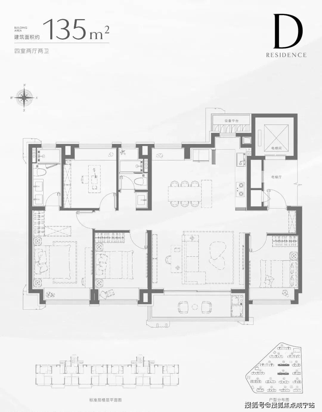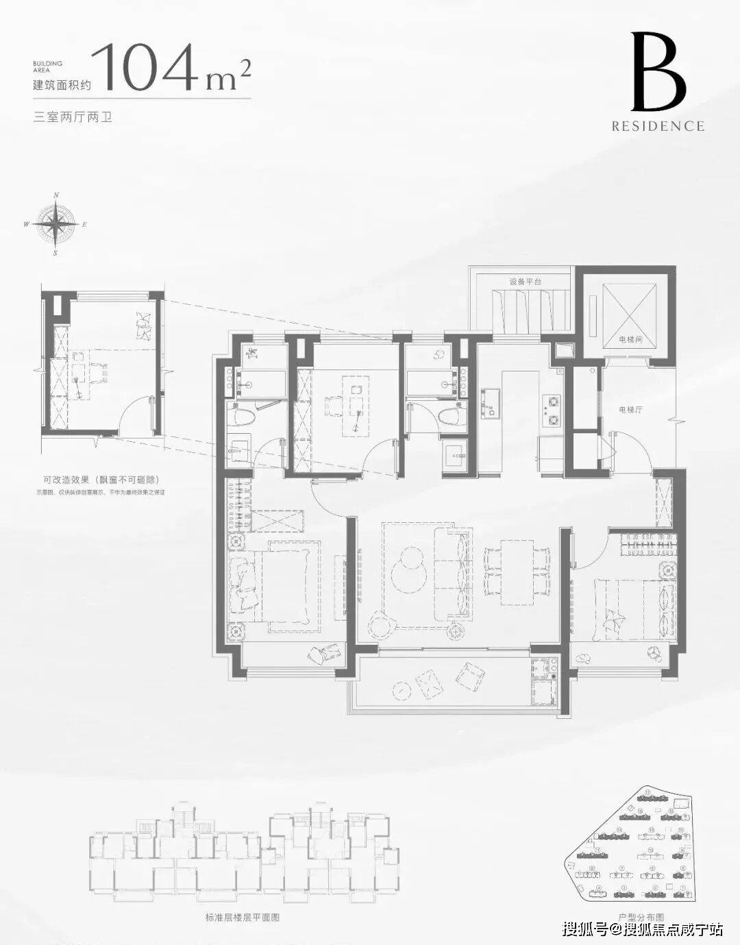 【招商中旅·揽阅售楼处电线F小高层,首开楼栋位于整个项目的北侧,共3种户型,分别为建面约96㎡三房两卫、建面约104㎡三房两卫、建面约135㎡四房两卫。3种户型提供了全生命周期成长空间的方案。