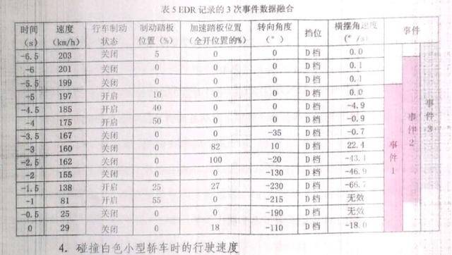 第一财经记者查阅《司法鉴定意见书》发现,该意见书对燃爆前6.5s的EDR(Event Data Recorder,事故数据记录器)3次事件数据进行了融合记录。