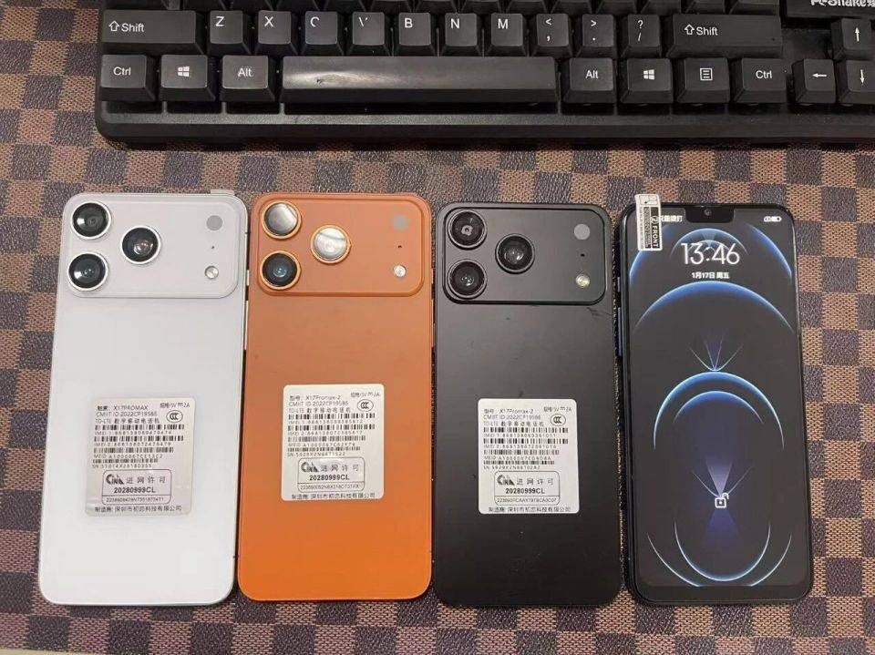 但是,这些山寨机的价格只有正品的4%左右,且越热销越便宜。其中最便宜的是一款复刻iPhone 17 Pro Max外观的山寨机64GB版本只要290元,256GB版本的批发价低至410元。运行内存号称有4GB,处理器用的是T610,电池3800mAh,橙蓝黑白颜色任选。